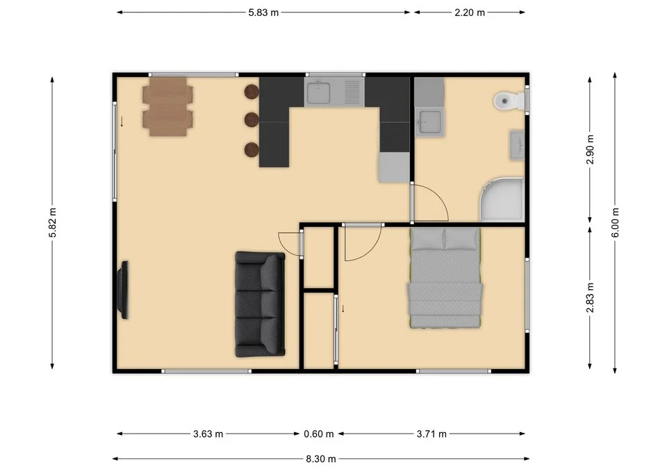 Our 50m² home features one bedroom and one bathroom, making it an ideal granny flat or additional dwelling on your property. Perfect for family members or staff accommodation, this compact yet comfortable home offers a smart solution for adding extra living space.